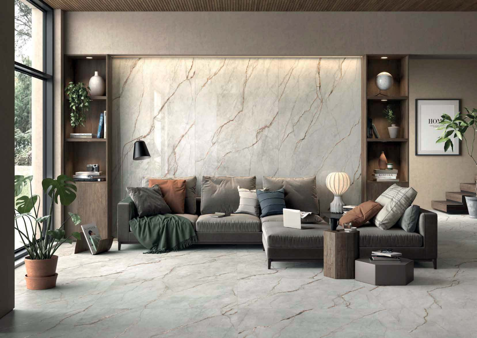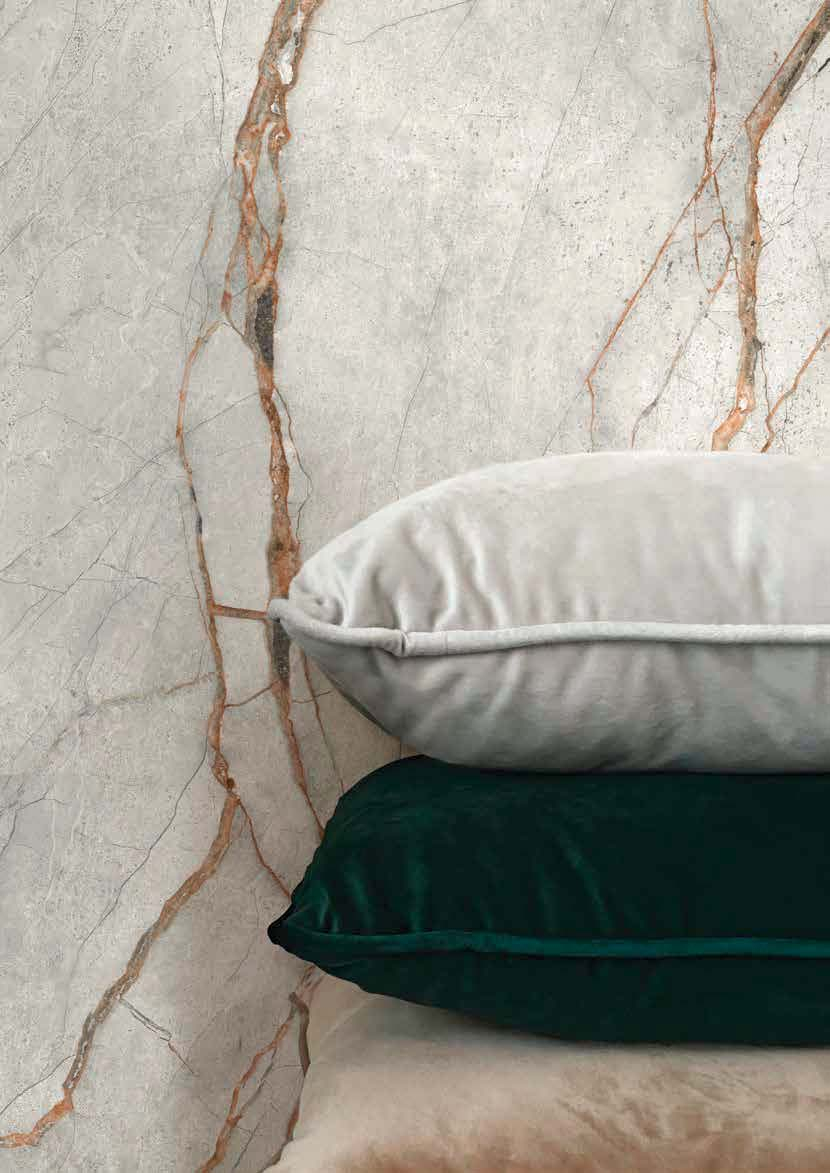 Grey Roots este o serie deosebită din colecția The Room, inspirată de o marmură anatoliană de o frumusețe aparte. Caracteristica sa principală este fundalul luminos, de un gri argintiu, care servește drept pânză pentru un amestec subtil de nuanțe. Zonele în care tonurile de alb și gri se împletesc sunt completate de incrustații și crăpături fine în nuanțe calde de aur și crem. Acest contrast, descris ca oferind un sentiment de regalitate străveche, face din Grey Roots o alegere de impact. Cele 5 grafici diferite asigură un montaj dinamic.