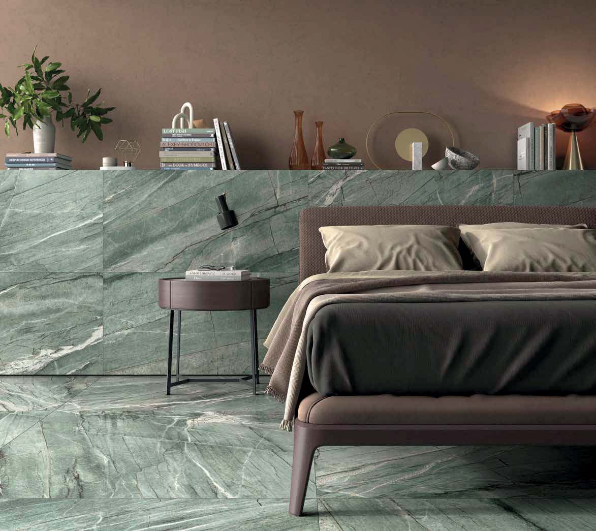 The Room este o colecție care celebrează opulența materialelor naturale. Prin Tiffany Green, Imola aduce în atenție grafisme surprinzătoare și culori vibrante, toate integrate într-un produs ceramic de înaltă performanță, adaptat cerințelor arhitecturii moderne.