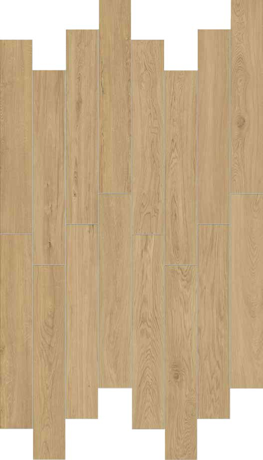 Plăcile 23x100 Natural nu sunt rectificate dimensional, ceea ce înseamnă că vor fi montate cu rosturi mai largi de 3-4 mm. Această caracteristică accentuează aspectul artizanal și organic al pardoselii — potrivit pentru stiluri interioare Nordic, Japandi sau Wabi-sabi, unde imperfecțiunea controlată este o valoare estetică.