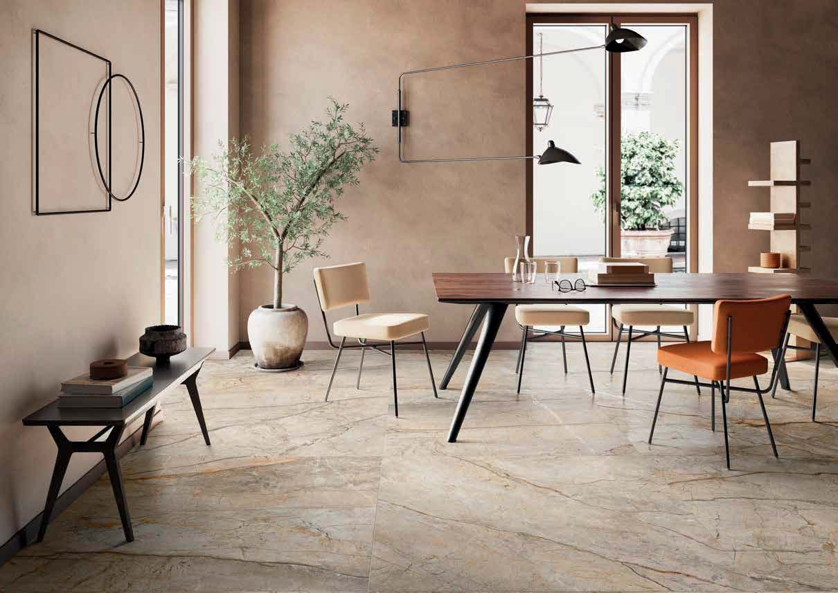 Finisajul Mat pe paleta gri-tortora/bej a seriei San Pedro produce efectul cel mai autentic față de marmura Silver Roots naturală din Asia Minoară. Catalogul Imola descrie San Pedro ca o marmură cu fond de culoare care poate varia de la gri-tortora la bej intens, cu venaturi adânci, închise și subțiri. Aceste venaturi – caracterizate prin profunzime cromatică (nu sunt vene superficiale, ci adânci) – sunt percepute cel mai fidel pe Mat: profunzimea culorii lor închise este păstrată integral, fără că reflexiile unui finisaj lucios să le dilute vizual. Fondul variabil gri-bej capătă pe Mat o textură vizuală proprie, apropiindu-se de aspectul marmurei naturale tăiate fără polish.