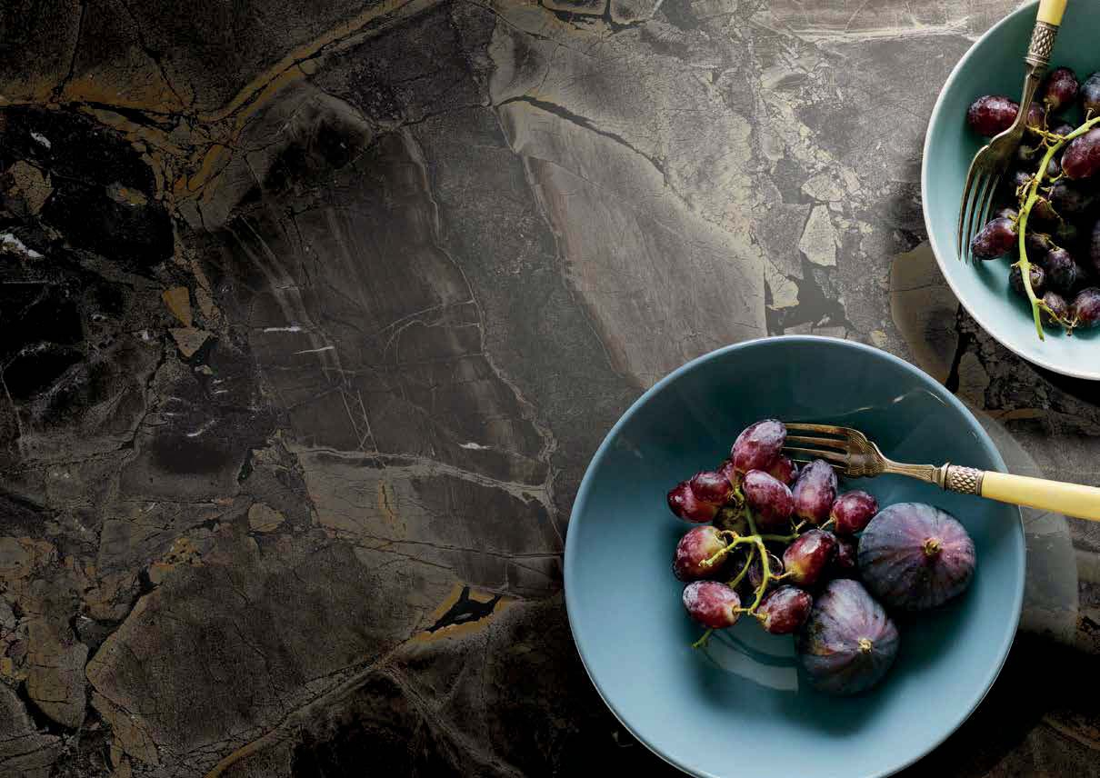 Infinity Brazil este un cuarțit rar din America de Sud, cu o culoare neagră intensă și deosebit de elegantă. Caracteristica tonalității sale negre este intersectată de puncte de lumină care îi exaltă splendoarea și luciul natural — o proprietate specifică structurii cristaline a cuarțitului, distinctă de estetica marmurei clasice. Imola The Room o interpretează cu 4 grafice diferite și colorare în masă, garantând fidelitate cromatică și densitate vizuală pe toată grosimea plăcii de 6,5 mm. Rectificată monocalibru.