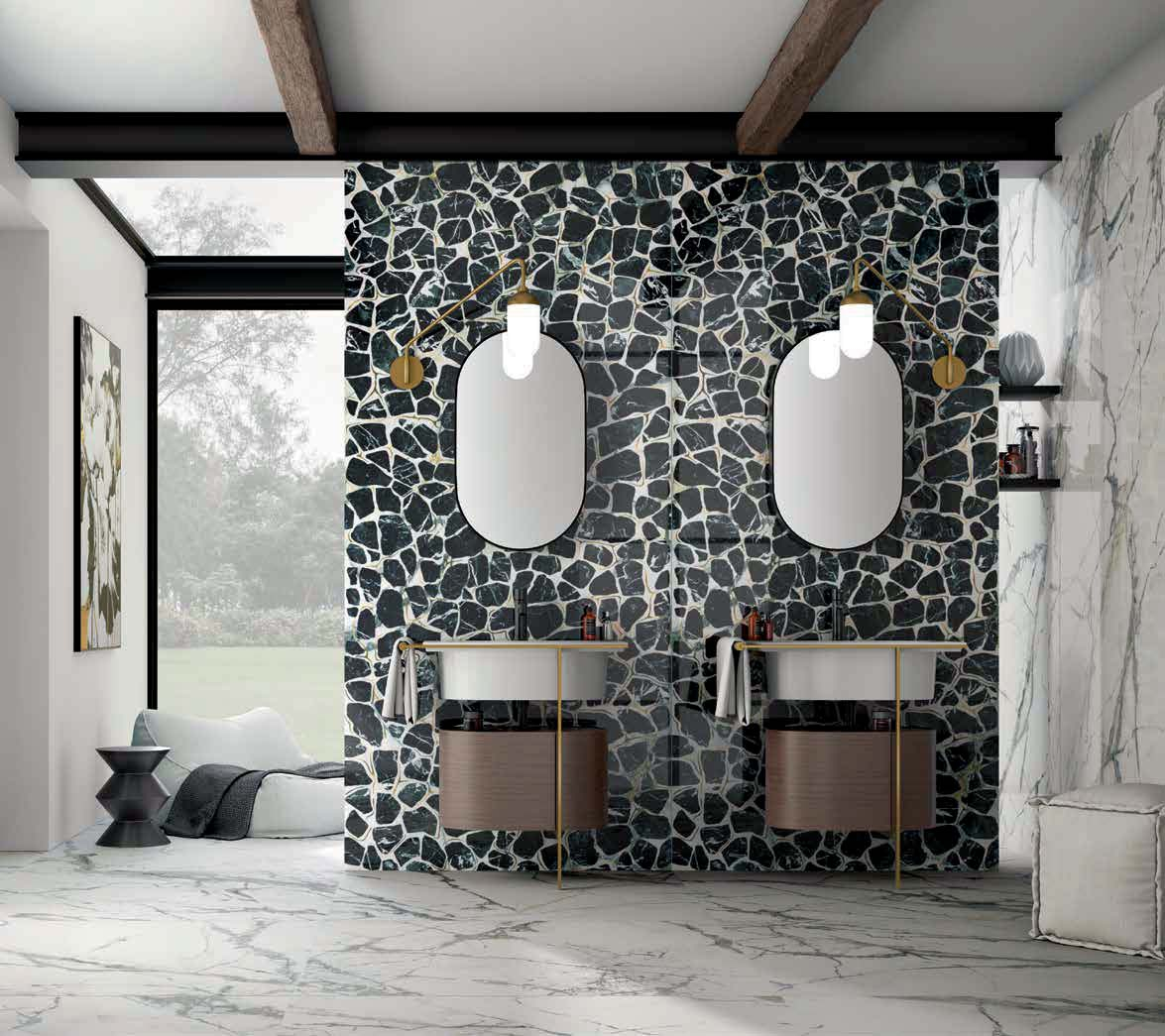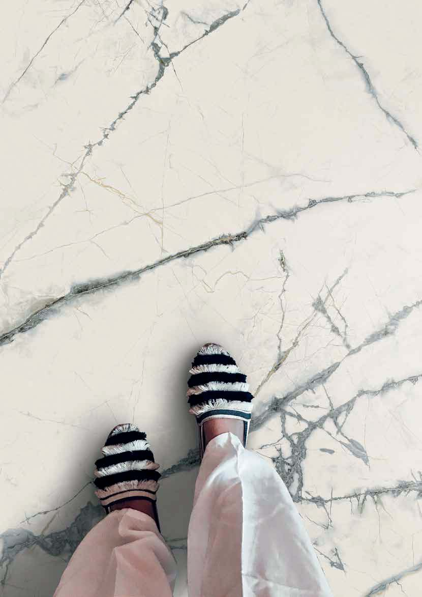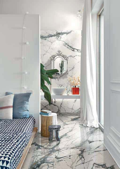 Seria Inv White aparține colecției The Room, o gamă de gresii porțelanate care reinterpretază marmuri naturale într-un limbaj contemporan.