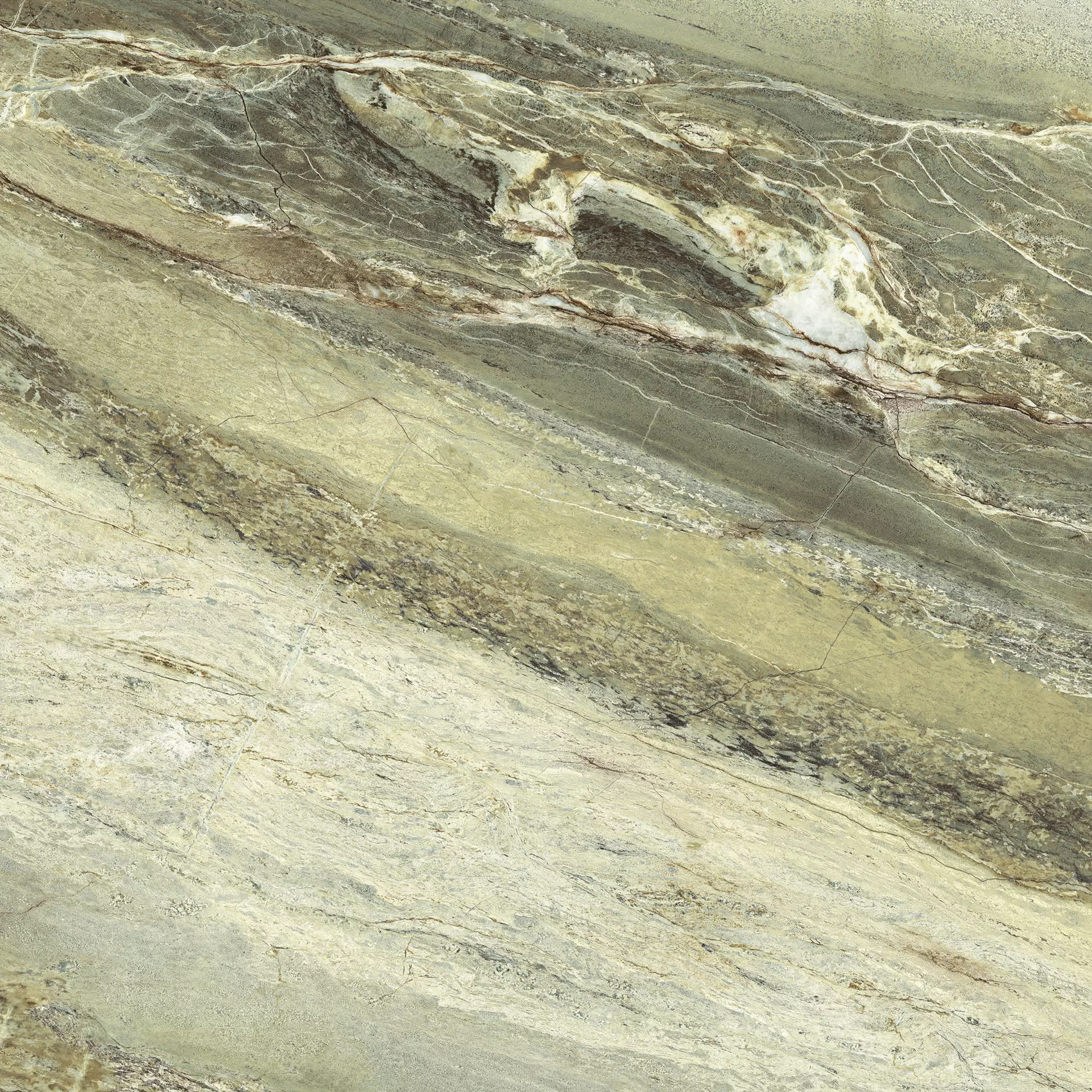 Formatul de 120x120 cm aduce seriei Irish Green o geometrie echilibrată, potrivită pentru suprafețe ample unde regularitatea vizuală este la fel de importantă ca și impactul cromatic. Dimensiunea pătrată creează un ritm calm, ordonat, care permite verdelor complexe ale seriei să se exprime fără a crea o dinamică perturbatoare. Pe pardoseli de mari dimensiuni – în livinguri, holuri sau spații comerciale deschise – acest format generează un câmp vizual uniform, cu o ușoară variație tonală între plăci (V2) care amintește de naturalețea pietrei reale.