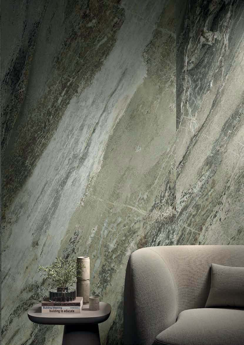 Irish Green 120x120 cm Mat este formatul echilibrat al unei serii care celebrează verdele în toată complexitatea sa tonală. Proporțiile pătrate creează un ritm geometric clar pe pardoseli și pereți, punând în valoare degradeul de verde specific marmurei irlandeze