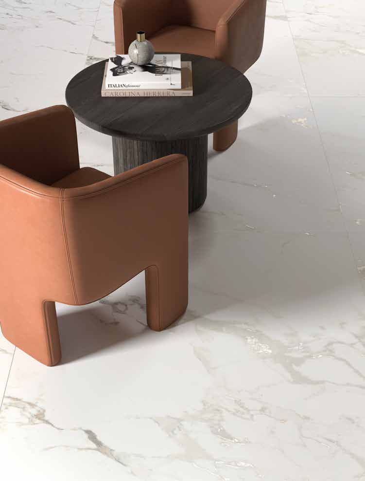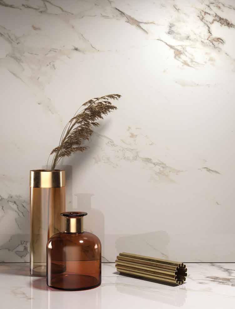 Breccia Capraia 120x278 cm Lappato exploatează dimensiunea monumentală a plăcii pentru a pune în scenă grafica breciată a seriei cu o intensitate cromatică maximizată de reflexiile selective ale finisajului semi-lucios. Fragmentele de culoare, matricea și variațiile tonale ale marmurilor breciate italiene sunt amplificate vizual de Lappato, creând o suprafață cu prezență tridimensională. Gresie porțelanată rectificată, 6.5 mm. Complexitate grafică la scară arhitecturală.