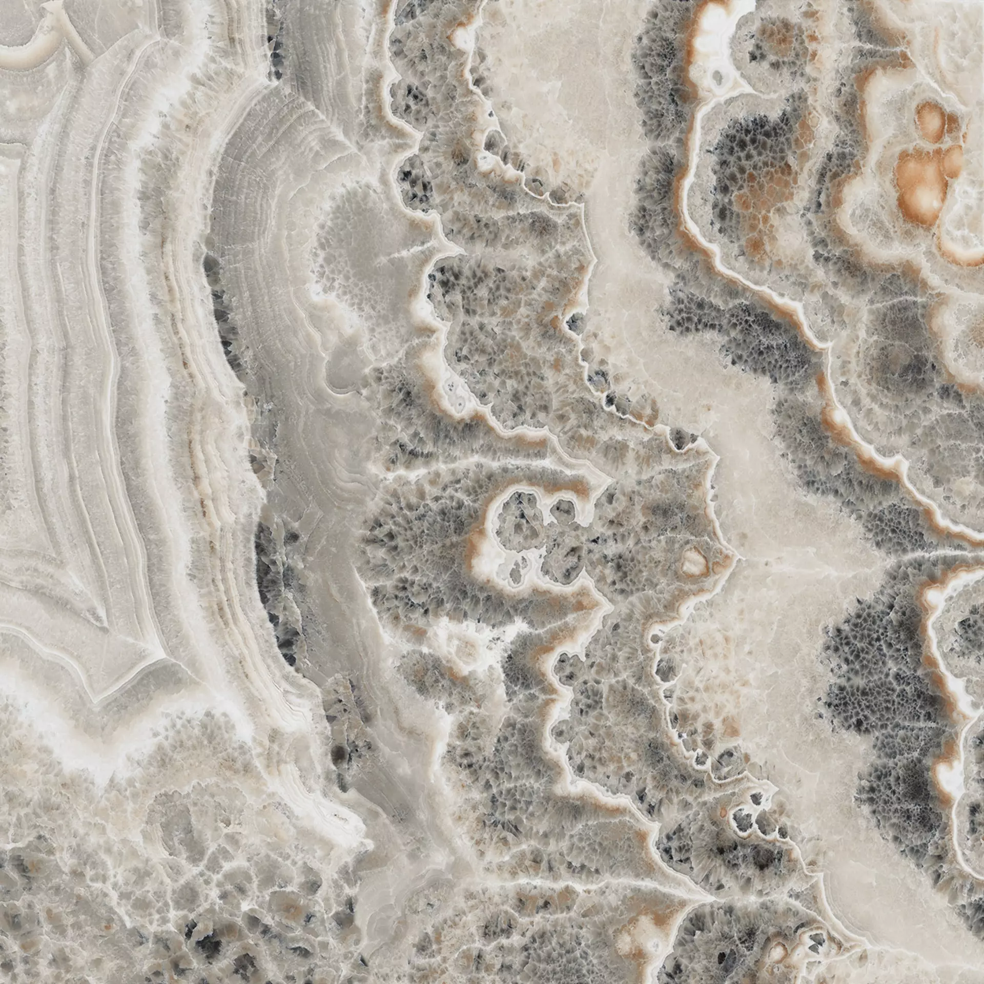 Finisajul Mat (RM) este alegerea care pune în prim-plan textura și profunzimea cromatică. Suprafața nu reflectă, ci absoarbe — lumina difuzează uniform, scoțând în evidență variațiile subtile ale fondului negru și complexitatea incluziunilor. Efectul este unul de materialitate autentică: piatra pare palpabilă, densă, reală. Mat-ul conferă și avantaje practice — rezistență sporită la zgârieturi vizibile, amprente și variații de iluminare —, ceea ce îl face ideal pentru pardoseli cu trafic intens și spații rezidențiale de lux.
